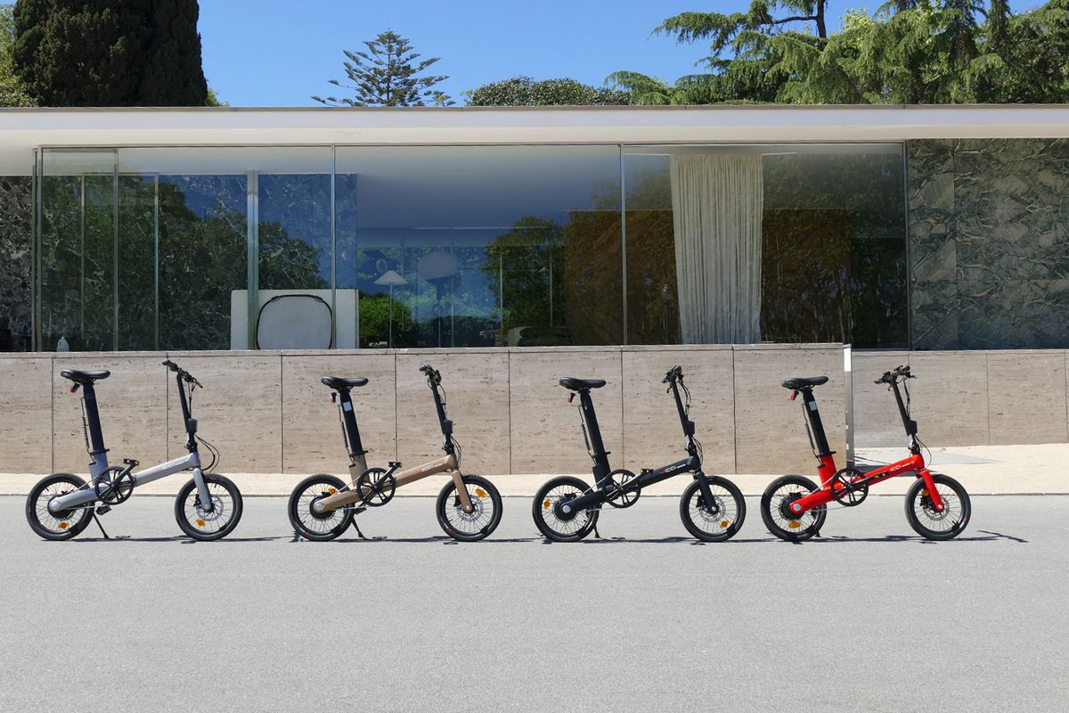 La V5+ es plega per dos punts. Per la part central de quadre i per la base de la barra de direcció. Un cop plegada, la base de la tija del seient és el tercer punt de suport que estabilitza la bicicleta.